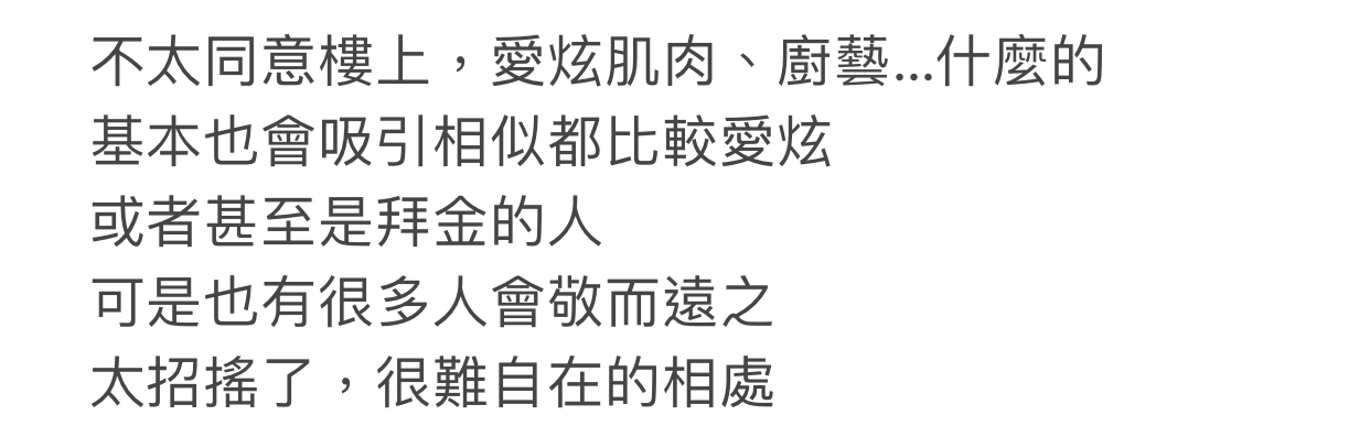 75F推haney917: 看對方是不是愛慕虛榮的個性就好11/27 11:56