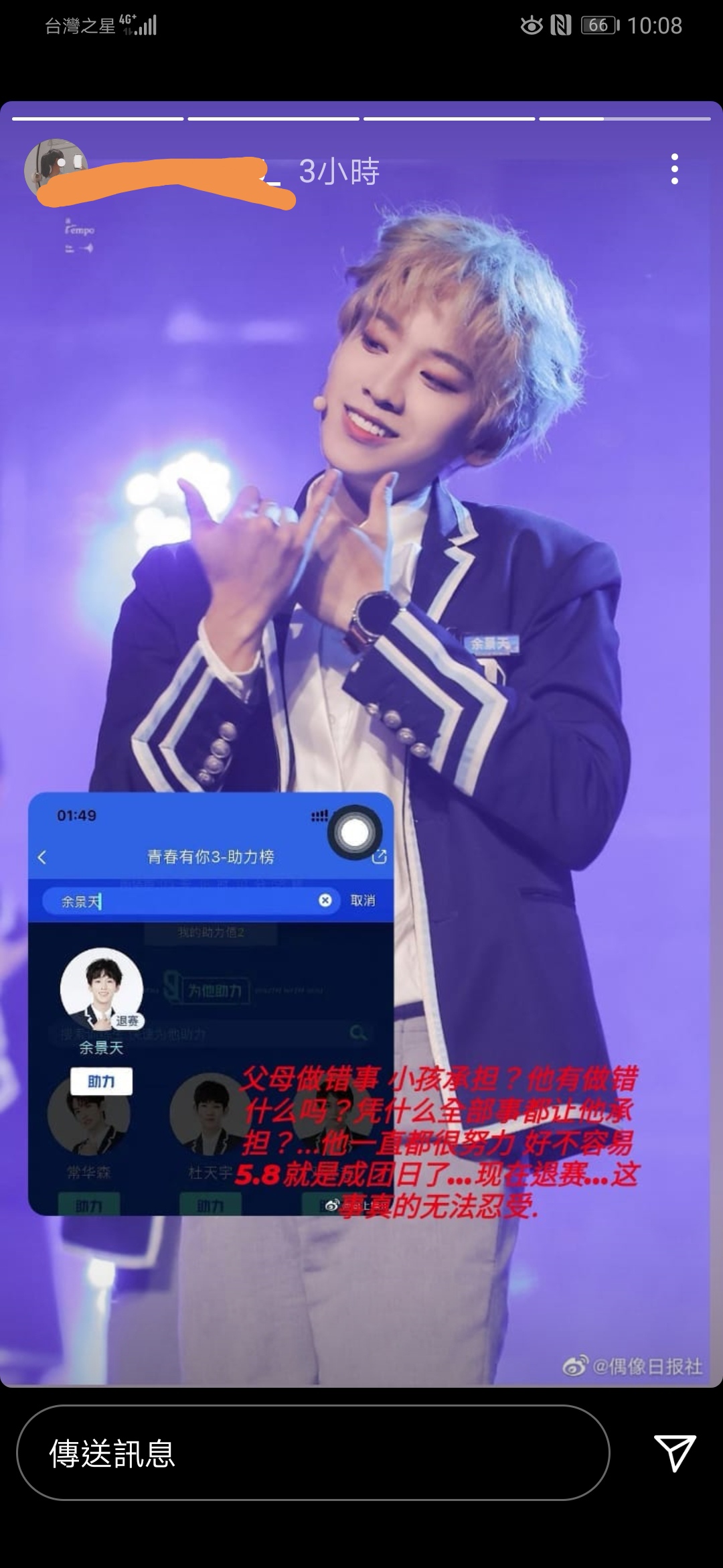 : 1.有個國三會考生,平日喜歡看創造營,青春有你,還有陸抖帥哥。他會把簡體文案放大